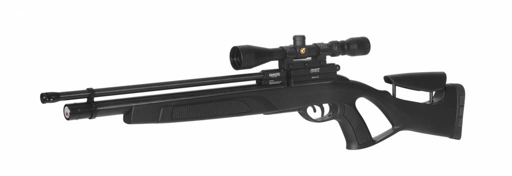 De Gamo Coyote Black 5.5mm is een persluchtbuks met een zeer goede prijs kwaliteit verhouding. De luchtbuks wordt geleverd inclusief pomp en 3-9 X 40 richtkijker. De luchtbuks heeft een 10 schots magazijn. Met een mondingsnelheid die oploopt tegen de 300