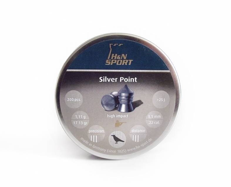 H&N Silver Point 5.5 mm is een zware, accurate luchtdrukkogel voor middellange afstanden. Deze kogel is ontworpen voor maximale impact en penetatratie met een maximaal schokeffect. Doosje a 200 stuks.